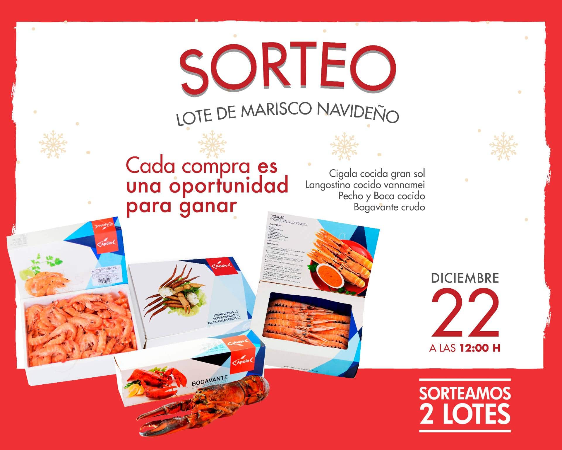 En cada una de las tiendas pertenecientes a Congelados Apolo, S.L. se celebrará el próximo día 22 de diciembre de 2017 el sorteo de Navidad, en el que se sortearán 2 lotes de marisco compuestos ambos por los siguientes productos Apolo: