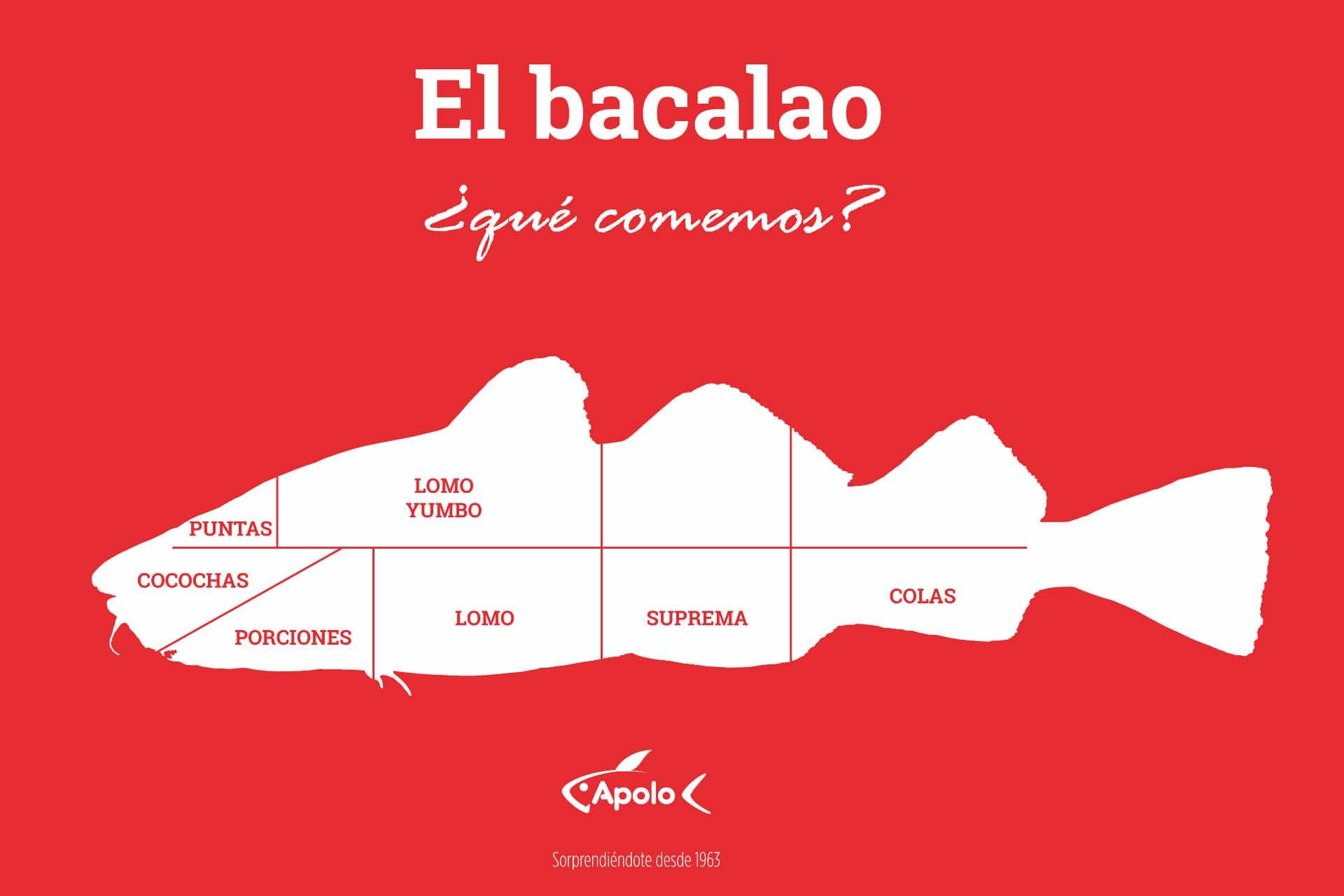 Así como es el cerdo en tierra firme, el bacalao es un pez del que se aprovecha todo. He aquí una imagen en la que podemos observar qué partes comemos del bacalao.